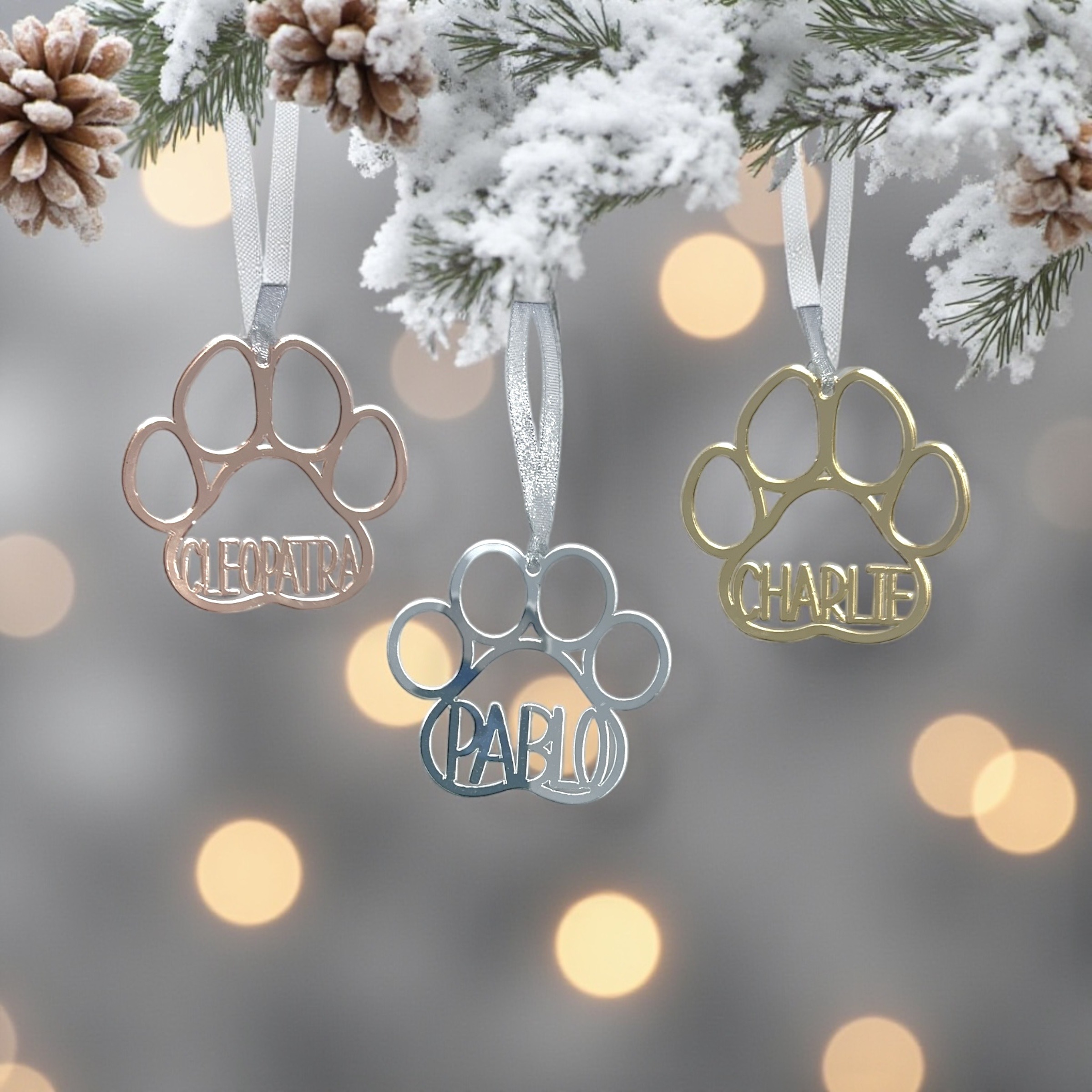La pallina di Natale a zampa è realizzata in plex satinato e plex a specchio a scelta tra Oro, Rose Gold e Argento.
